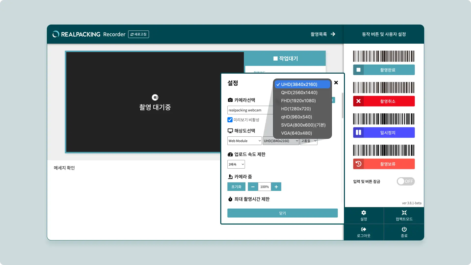 📌 이번 업데이트 기능은 리얼패킹 촬영 프로그램 버전 3을 사용하는 고객사 중, 3.8.1 베타로 업데이트를 선택한 경우에만 제공됩니다.